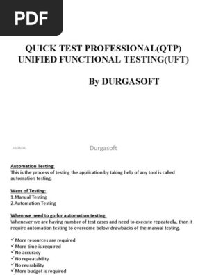 Quick Test Professional Qtp Unified Functional Testing Uft By