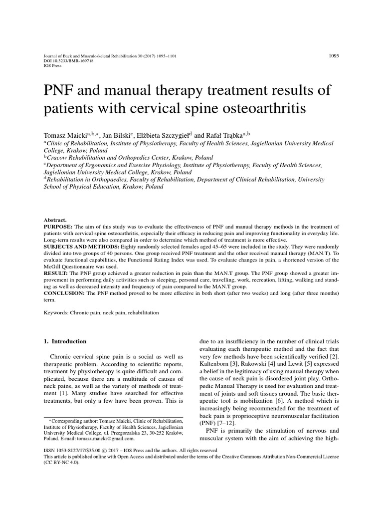 2017 Pnf And Manual Therapy Treatment Results Of Cervical Oa