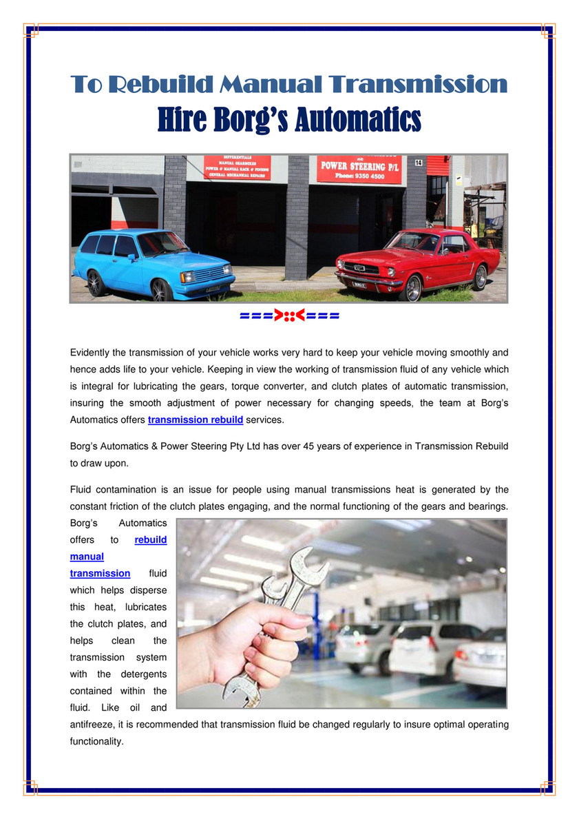 Borgs Automatics Experts In Getting Manual Transmission Rebuild By