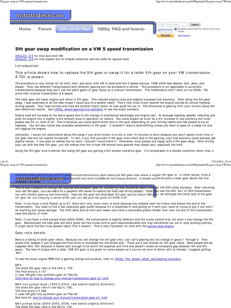5th Gear Swap On Vw Manual Transmission Manual Transmission